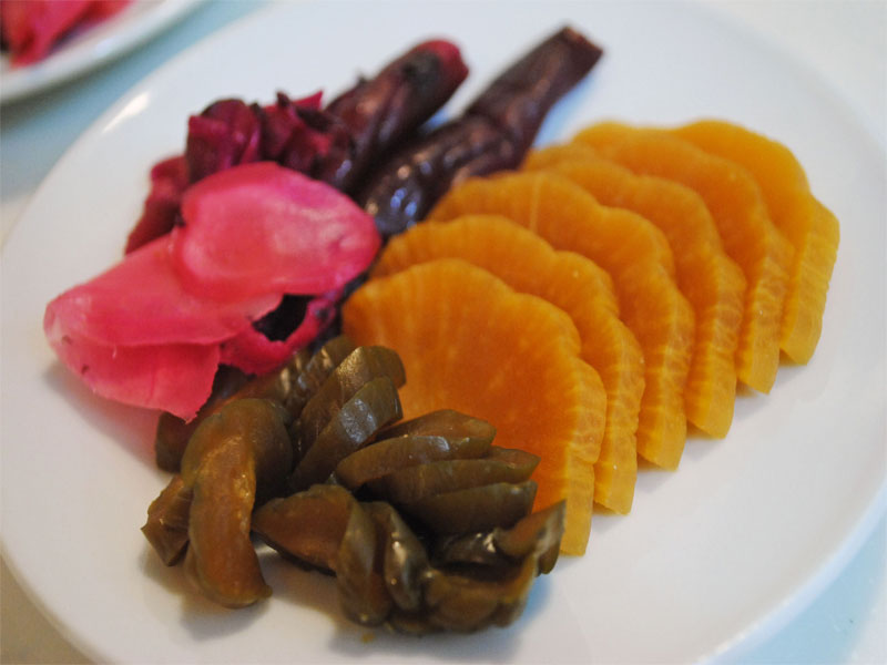 Muối chua rau quả không xa lạ với các gia đình Nhật, nhưng nhờ vào một số loại rau quả chỉ riêng có ở Kyoto, thêm chút bí quyết truyền thống mà rau quả muối chua ở Kyoto đã trở thành đặc sản. Gọi là dưa chua, nhưng thật ra nguyên liệu làm đồ chua rất đa dạng, từ các loại cải, bắp cải đến dưa leo, mà người Nhật gọi chung là tsukemono, nghĩa là món ăn kèm. Ngoài sự phong phú về nguyên liệu, tsukemono còn có khá nhiều vị khác nhau, từ chua cay đến mặn ngọt.