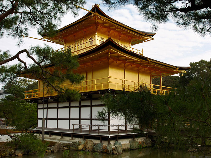 Kinkakuji (tạm dịch là Kim Các Tự), còn có tên khác là Rokuonji. Ngôi chùa được xây dựng vào năm 1397 như một phần trong khu đất của tướng quân Ashikaga Yoshimitsu. Sau năm 1408, Kinkakuji được cải tạo và sử dụng như một ngôi chùa cho đến ngày nay. Kinkakuji thờ một mảnh xương của đức Phật. Chùa gồm có ba tầng mà tầng hai và ba được dát vàng lá.